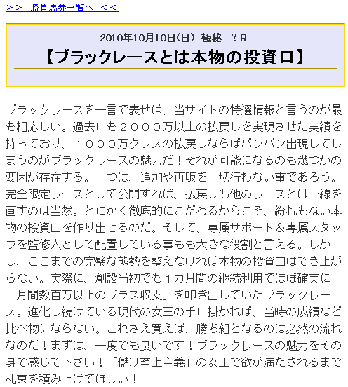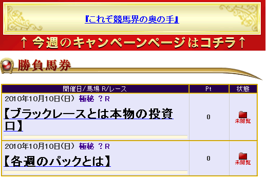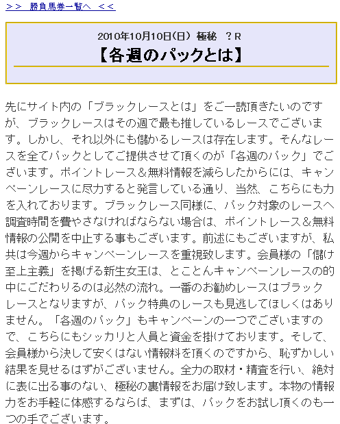 しかも、会員ページの勝負馬券という項目には、勝負馬券の情報とはおよそ程遠い、見る価値もない情報しか書いてなかった。