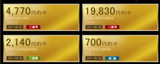 察するに、700円程度の実績は無料情報、それ以外の高額的中がキャンペーン情報になっているのだろう。わかりやすい掲載でこのサイトのレベルが露呈している。