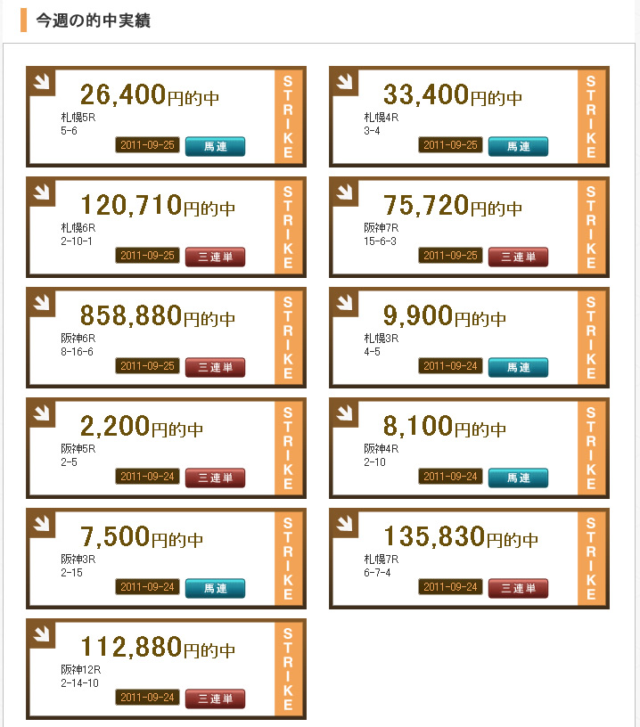 を行っており、その的中率は60%を下回らず、回収額は平均4500%近い数値を