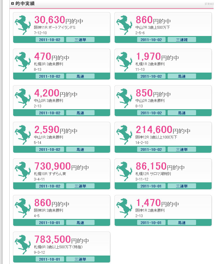 このサイトの情報では、高配当馬券を定期的に当てており、効果的な情報ルートが