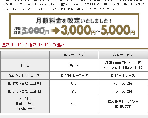 月額制の競馬情報サイトは比較的少なく、更に料金設定も休めという点では他の