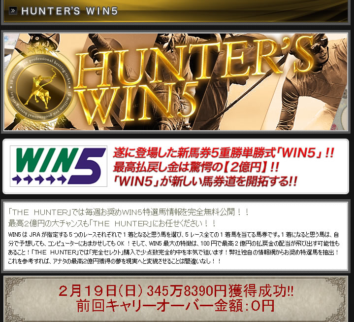のコンテンツがある。HUNTER'S WIN5という題名だ。