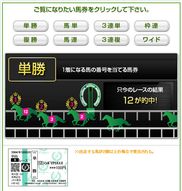 馬券の種類の解説があったりと、初心者への配慮も若干見られる。