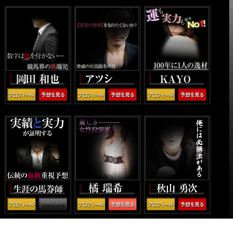 サイトリニューアルを行い提供サービス全てを改新。契約する関係者の数を増やし、的中する可能性を更に高めています。その影響は無料情報にも現れており、今競馬サイトの中で最も旬な会社として人気を集めています。まずは1鞍提供の無料情報をお試しいただくことをおすすめします。