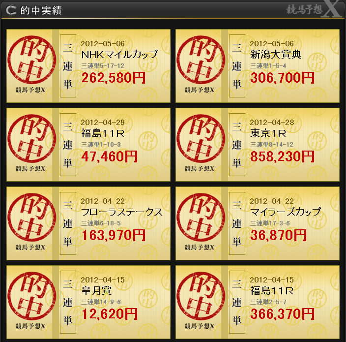 実績についても3連単による的中実績が多く、万馬券の獲得が非常に