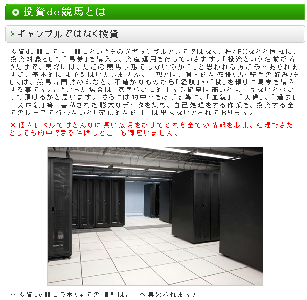 投資競馬としての予想提供サイトとして認知されており、スパコンを用いた買い目解析をしている。