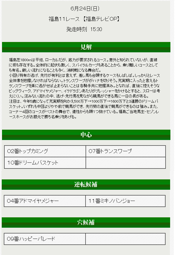 無料情報は買い目情報こそ無いが、内容は非常に優秀で、考察が深い。