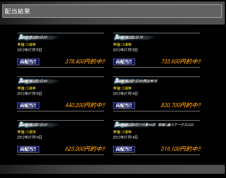 回収額も非常に高い内容となっており、数十万の的中内容となっている。