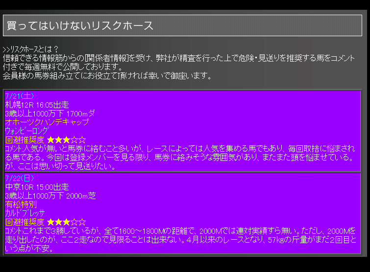 過去の配当が見られない点が、このサイトの的中力がコンスタントなのかを